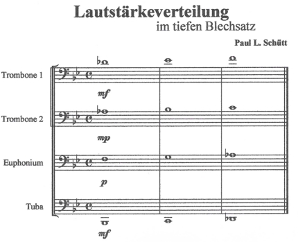 Auch im tiefen Blech gibt es eine "erste" Stimme. Die z. B erste Posaune (Tenorhorn) und die Tuba (Bassposaune) bilden einen Rahmen, mit meist klarer gegenläufiger (kontrapunktischer) Melodielinienführung. Die zweite Stimme liegt oft im Terzbereich und sollte von der Lautstärke unter der ersten Stimme liegen. Die dritte Stimme hat in allen Instrumentalsätzen musikalisch den schwierigsten Part zu spielen. Die Stimme liegt zwar in einem gut spielbaren Mittelbereich, ist aber musikalisch als Füllstimme eingesetzt und muss meistens abstrakte Tonsprünge spielen. Die Lautstärke für die dritte Stimme sollte unter den Stimmen eins, zwei und vier liegen.