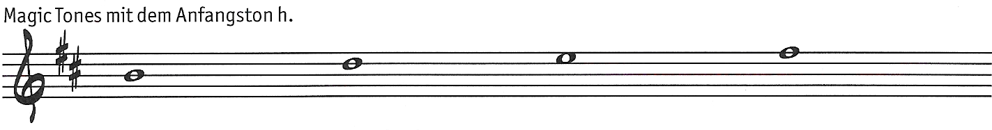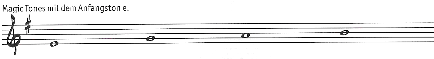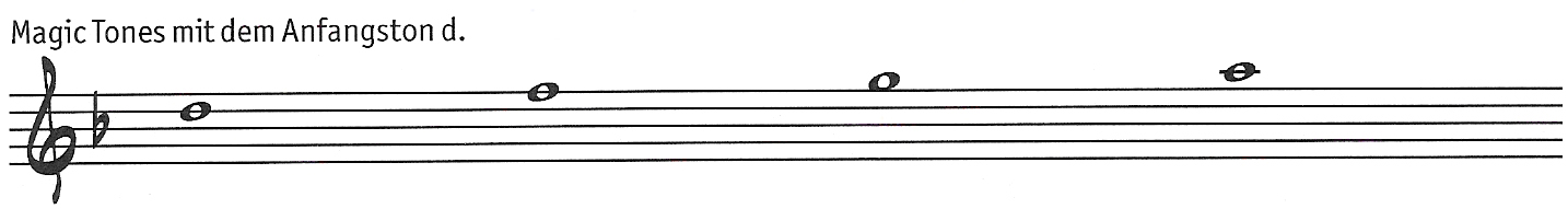 Die Magic Tones mit dem Anfangston "a" (Tonart C-Dur) heißen: a,c,d,e.