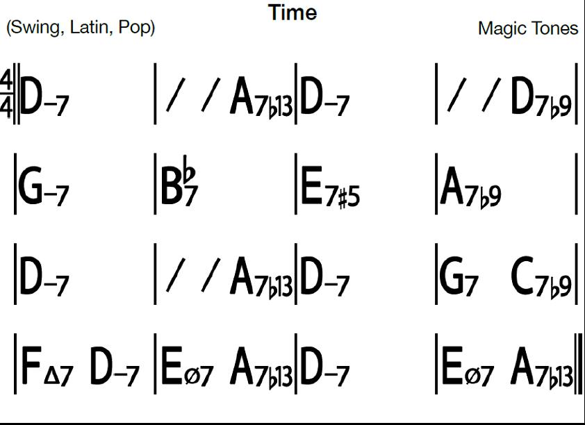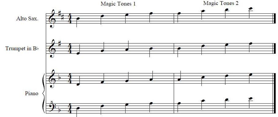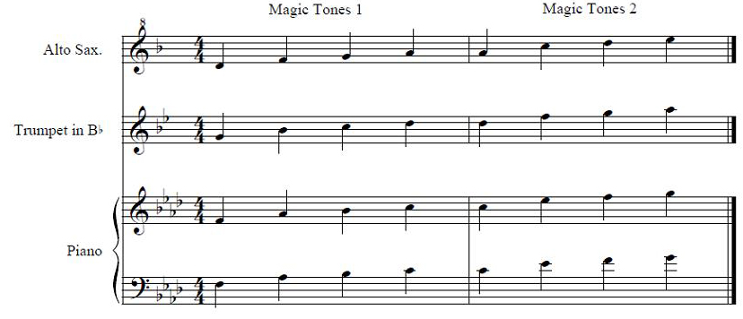 "Magic Tones" sind vier ausgewählte Töne, die man beim Improvisieren oft über das gesamte Musikstück spielen kann, ohne sich um die harmonischen Zusammenhänge kümmern zu müssen. Man benötigt nur einen Anfangston und schon kann es losgehen.