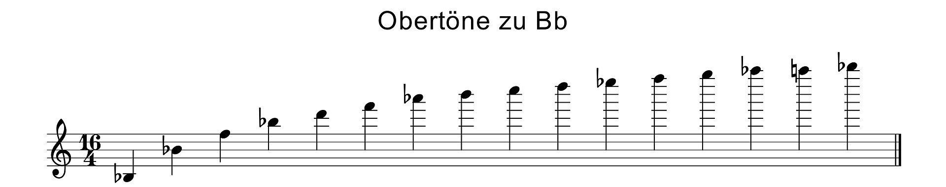 Die Übung besteht darin, die Obertöne zunächst Ton für Ton von unten nach oben und zurück zu spielen. Anfangs sind es vielleicht nur zwei oder drei, aber mit etwas Übung sollten vier oder fünf Obertöne möglich sein. Wichtig bei dieser Übung ist, die Töne so sauber und so lang wie möglich zu spielen.