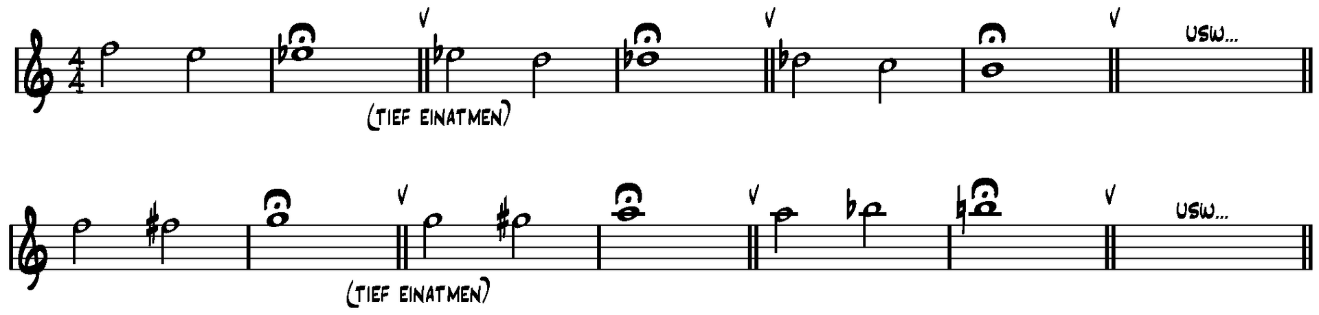 Egal, welches Blasinstrument wir spielen, das Spielen von langen Tönen ist immer die beste Übung für eine gute Atmung und für einen schönen Ton, denn Ungenauigkeiten in der Ausatmung fallen hier sofort auf: Wenn wir nicht ganz gleichmäßig und einem stetig gleichen Druck die Töne anspielen, merken wir sofort ein Holpern oder Zittern im Ton.
