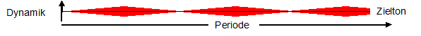 In der Ausführung lässt sich das "Tremolo" als wiederkehrende Abfolge von an- und abschwellender Dynamik darstellen.