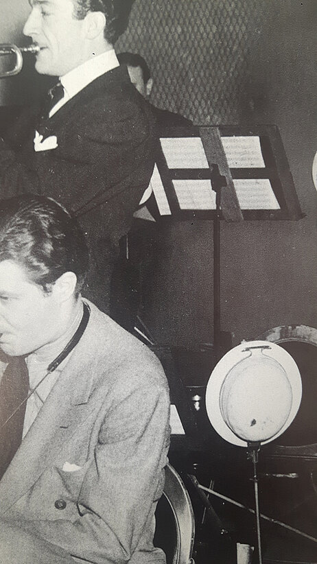 Playing with a plunger requires placing the funnel in the ball of the thumb and the hand, which makes moving the mute a lot easier (Figure 2). A few decades ago, “hats” were attached to the music stand, allowing musicians to play into it in order to achieve an almost identical effect. A bowler hat was the tool of choice, because it was available in various materials (usually metal). The hat’s name, by the way, is derived from its two inventors—Thomas and William Bowler—and made its first appearance in 1849, in London. Another widespread name for a bowler hat is “Derby mute”. Be it as it may, playing into such a hat was a popular way of muting the sound. It is rumored that some musicians put short texts or even the score of such passages inside the hat to be sure to use this technique. Figure 3 shows Harry James with a white Derby/bowler mute attached to his music stand.