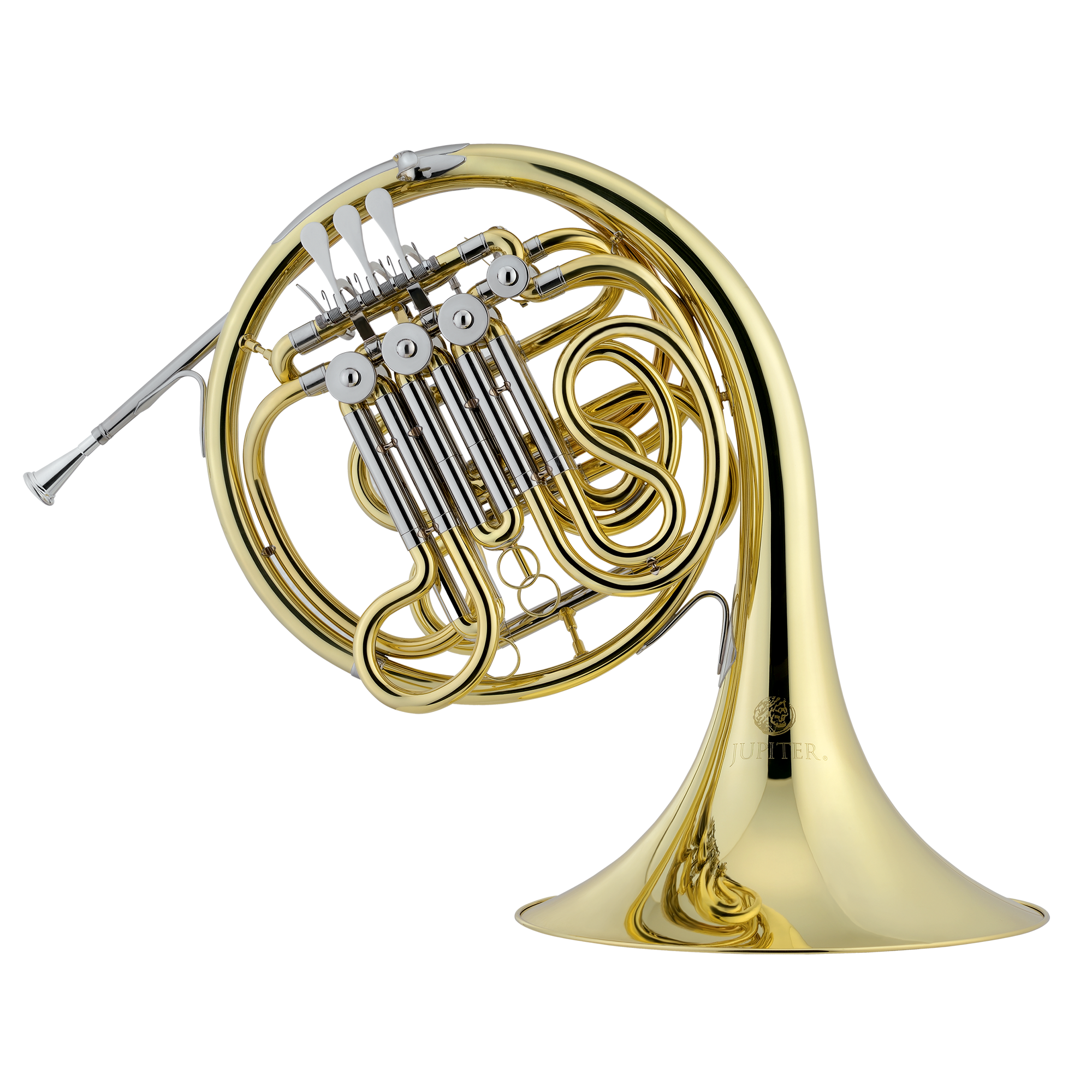 The JUPITER JHR700 is a single horn in F with a rose brass leadpipe, mechanical link tapered rotary valves and nickel-sleeved outer tuning slides. It is a great-sounding, easy-playing horn that should take a student through their beginning stages of musical training. Lacquered Brass Body is produced using state of the art technology to ensure an instrument of the most accurate scale and playability. The Rose brass leadpipe warms the sound of the instrument and provides enhanced instrument longevity.