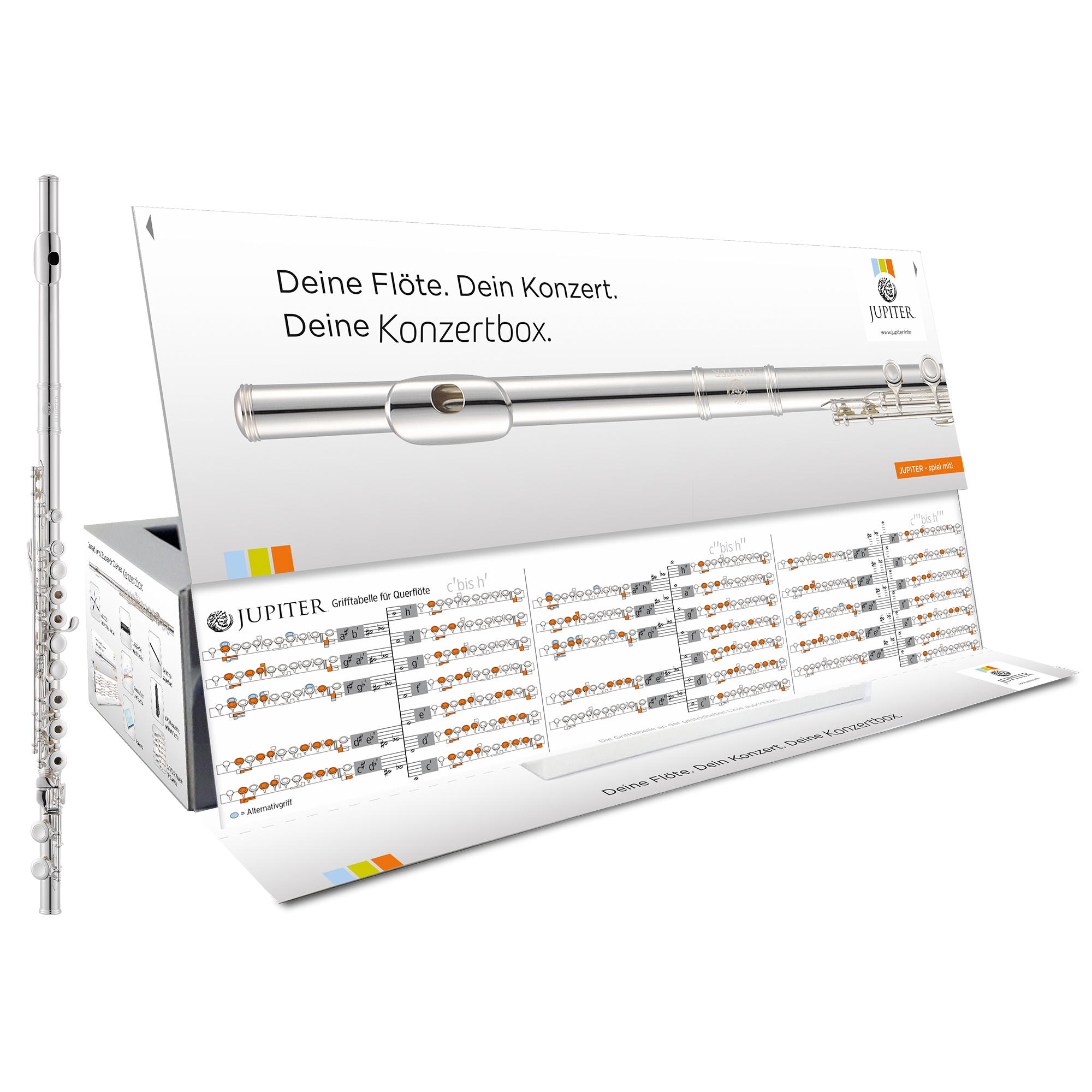 Die JUPITER Konzertbox ist ein Verwandlungskünstler und wird mit einfachen Handgriffen zum Notenpult mit integrierter Grifftabelle. Neben diesem großartigen Feature beinhaltet sie zudem alle Dinge, die das Flötespielen komfortabel machen.
