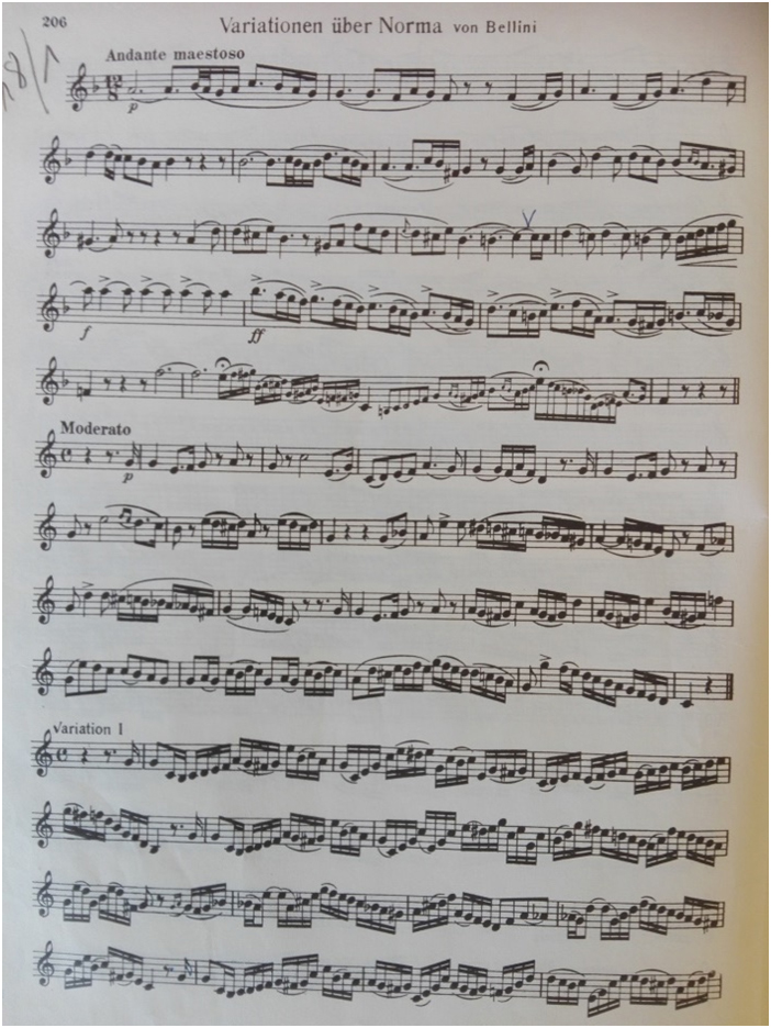 Obviously, instrumentalists were just as eager to reach this sonic ideal. This triggered the emergence of the so-called “virtuoso style”: famous operatic arias were arranged by well-known soloists who adapted them to their instrument. This was deemed necessary, because the solo literature available at the time no longer met the expectations of “solo virtuosos”. In addition, the invention of valves added a chromatic dimension to the instrument. Jean Baptiste Arban duly expanded his trumpet method with belcanto arias by the most famous Italian composers. The “Variations on a Theme” genre proved a major boost for instrumental scores and quickly became a genre in its own right (O du lieber Augustin/Carnival of Venice, etc.).