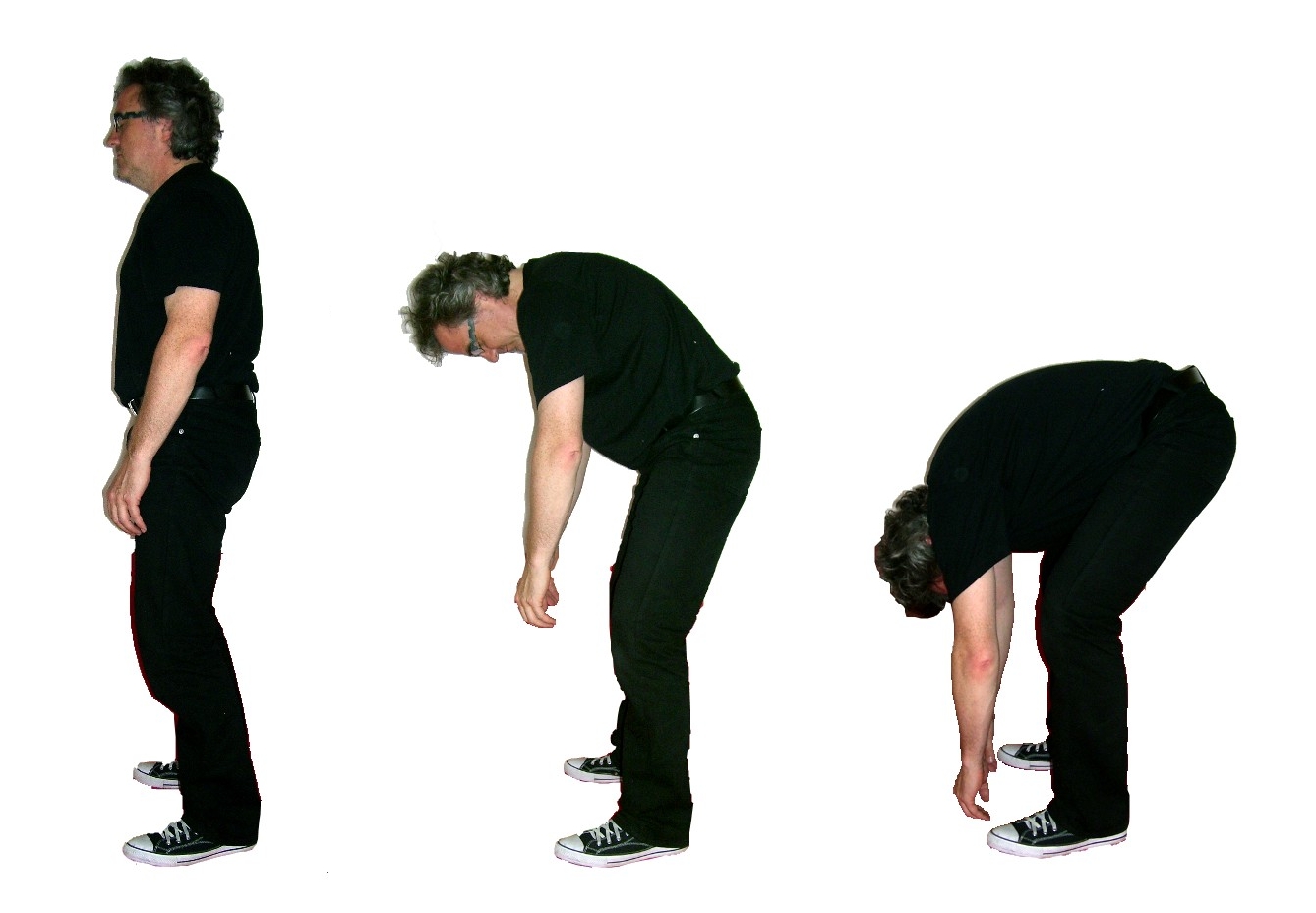 Je voeten staan parallel naast elkaar, ongeveer op schouderbreedte en de knieën zijn ligt gebogen. Sporters kennen deze positie als "lichte spreidstand". Buig vervolgens langzaam de romp voorover. Let erop dat het hoofd ontspannen naar beneden hangt en de schouders losjes zijn. Wanneer je met de romp naar beneden gaat moet je gewoon door ademen, dus niet stoppen met ademen. Ga zo ver naar beneden als het lekker aanvoelt, als je met je handen de voeten raakt is het ok, als je je voeten niet kunt raken is het ook in orde.