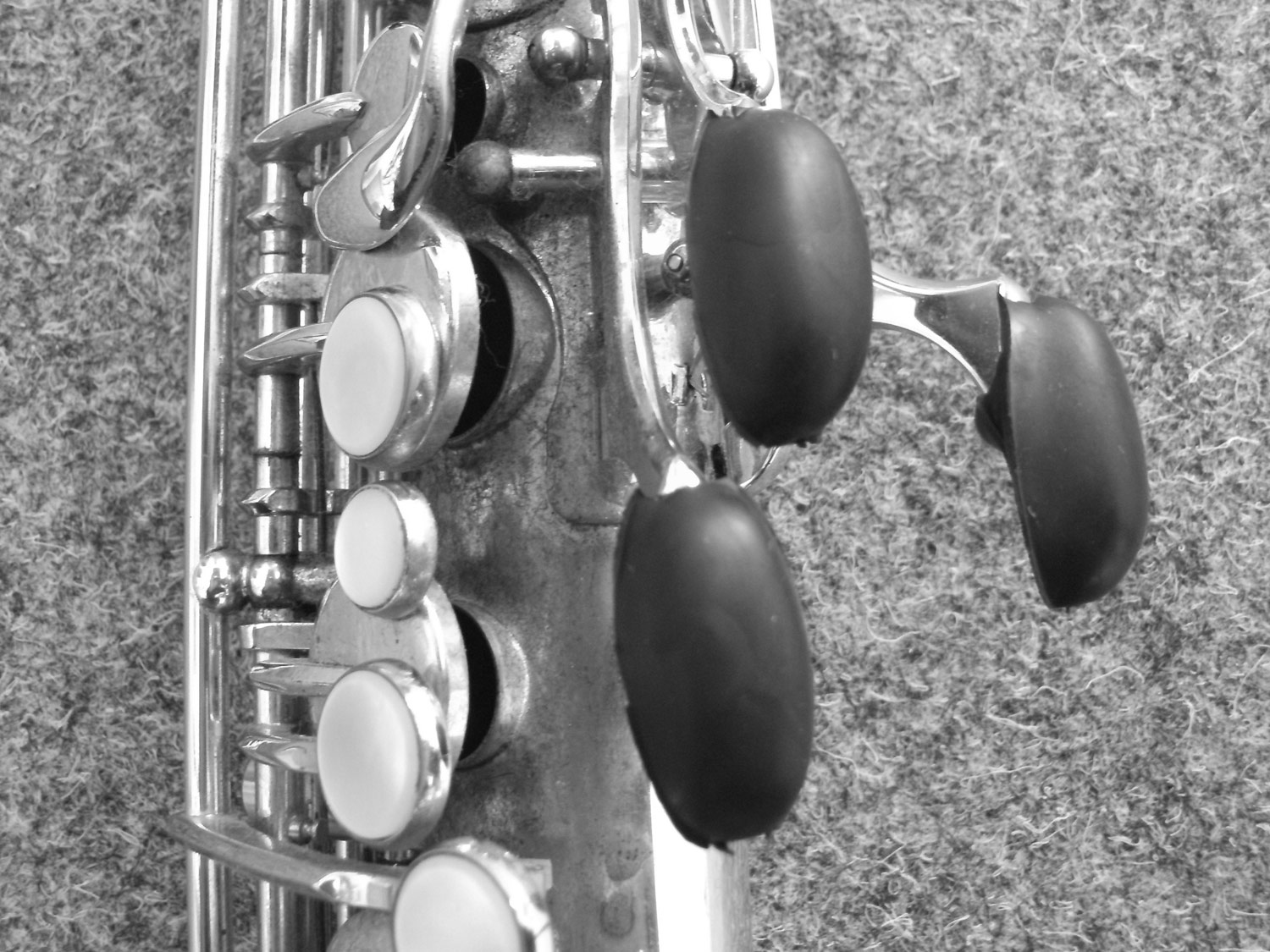 Here is another affordable item likely to make a significant difference for players with large hands. “Palm keys” is the international term for the lateral keys you to press with your left index to access the third octave (top D, D# and F). Saxophone players with large hands may have problems pressing them, because they are too low with respect to their hand. Just slide these rubber pads over the palm keys to raise them, as it were. My advice: give it a try and see if it works for you.